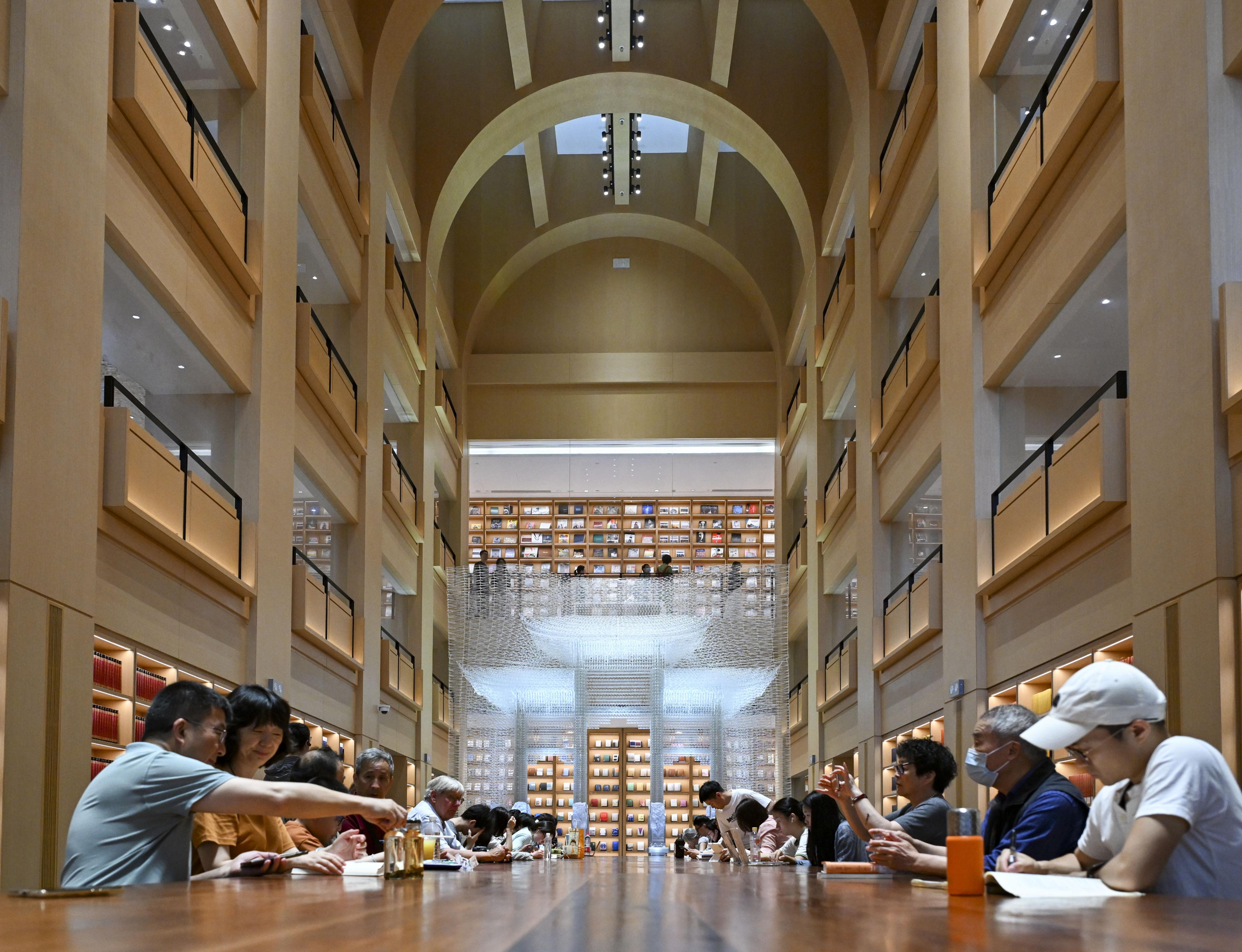 人们在上海徐家汇书院读书(5月17日摄)。新华社记者陈朔 摄